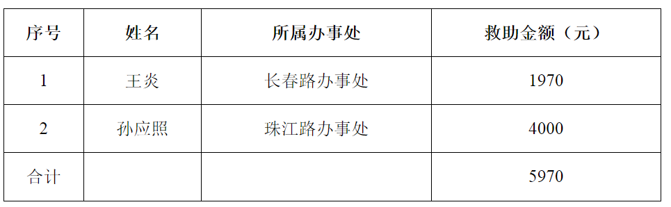 澗西區2020年6月份重大疾病醫療救助發放表