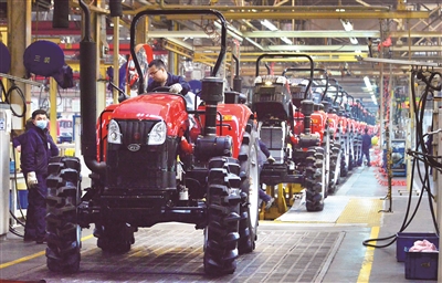 ?昨日,中國一拖大輪拖總裝生產線上一派繁忙景象,工人爭分奪秒裝配,一臺臺“東方紅”大輪拖列隊駛下流水線。