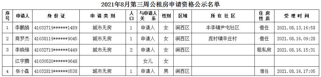 2021年8月第三周公租房申請(qǐng)資格公示名單