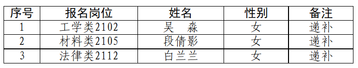 因部分考生放棄考察出現崗位空缺,從報考同一崗位的人員中,按面試成績從高分到低分的順序依次遞補。第三批進入考察環節人選名單如下: