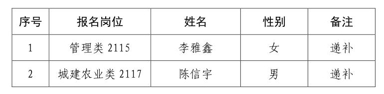 按照《洛陽市澗西區2021年引進研究生學歷人才公告》相關程序,因部分考生放棄考察出現崗位空缺,從報考同一崗位的人員中,按面試成績從高分到低分的順序依次遞補。現將澗西區2021年引進研究生學歷人才第四批考察人選情況通知如下: