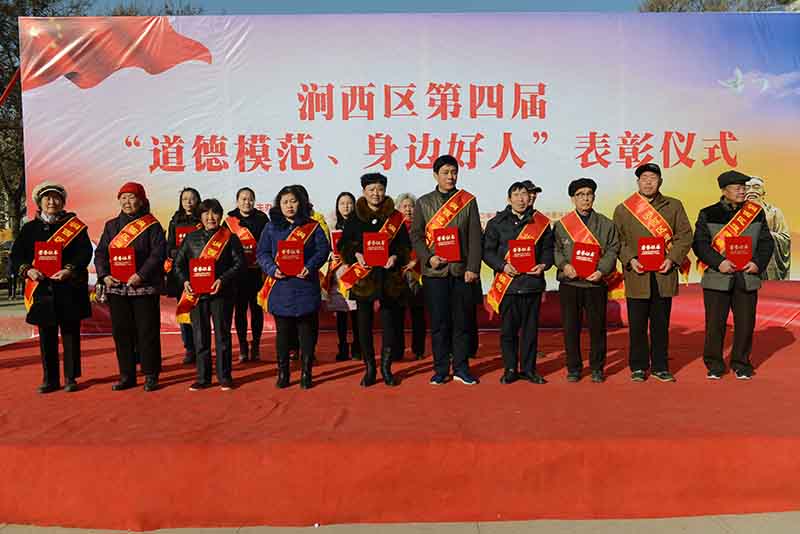 在全國掀起學習十九大精神熱潮之際,7日,澗西區第四屆“道德模范、身邊好人”表彰儀式在一拖體育館廣場隆重舉行。
