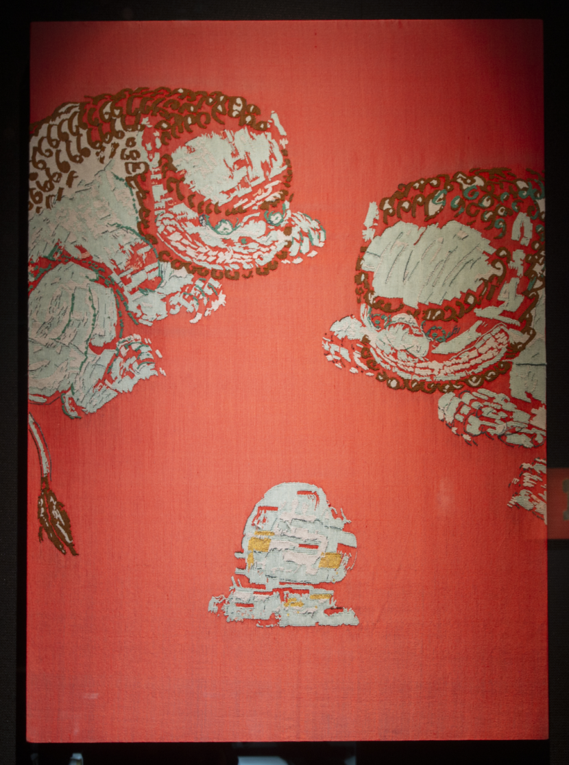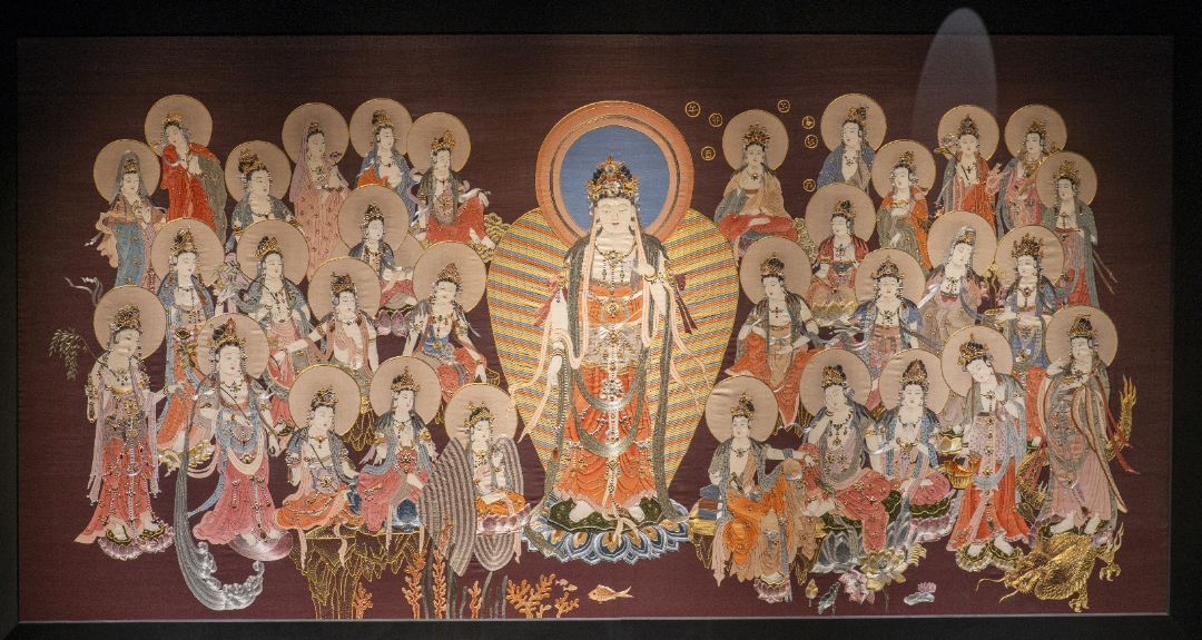雀金繡是中國古代皇家和佛教專用的高等級織繡工藝,以雀羽線和金縷線為主要材料,配以多種色線,采用編織、雕塑、緙金等多種手法織繡而成。此次展覽展出了洛陽雀金繡研究院近年來的扛鼎之作,通過“宮廷御用”“蓮生妙相”“文人雅趣”“時代新貌”四個部分向觀眾較為全面地展現了雀金繡非遺技藝的最高水平,及其在當代發展創新的最新成果。此外,龍門石窟唐代造像、洛陽博物館相關藏品也在展覽中有重要呈現,以更為沉浸的視角幫助公眾理解雀金繡的起源和發展。
