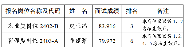 因部分考生自愿放棄體檢出現崗位空缺,現從報考同一崗位的人員中,按面試成績從高分到低分的順序依次遞補。遞補體檢人員名單如下:
